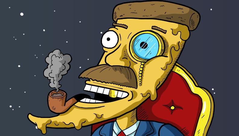 You don't know his story. Pizza Boss doesn't either. But his presence means something. Continuity. The thing that was here first, still observing what comes next. The $100M mystery that predates the grind.